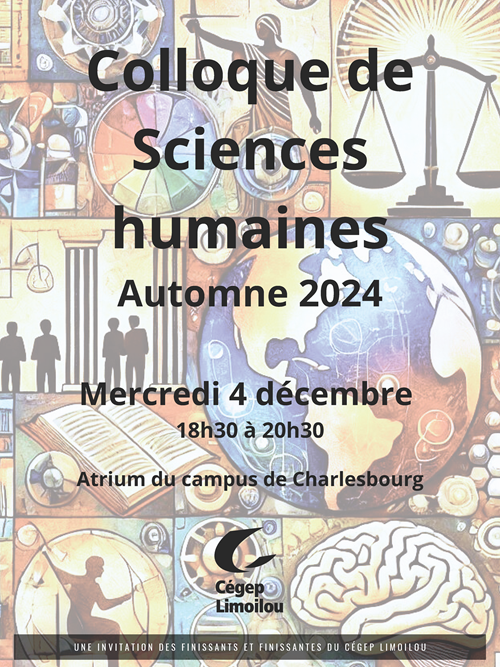 Le Cégep Limoilou vous invite à une soirée combinant les talents et réalisations des étudiantes et étudiants des programmes de Sciences humaines et de Sciences de la nature. Ces deux colloques, se tenant conjointement le mercredi 4 décembre, offrent une occasion exceptionnelle de découvrir les projets culminants de leur formation collégiale.