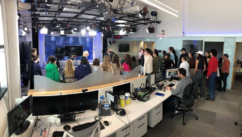 Le groupe a aussi profité de sa sortie pour faire une tournée dans les studios de la station TVA. Accueilli par le directeur de l’information, Marc-Antoine Bernier, et la productrice, Geneviève Richard, il a pu rencontrer divers membres de l’équipe de la salle des nouvelles. La chef d’antenne, Julie Couture, a notamment répondu aux nombreuses questions demandées par le groupe.