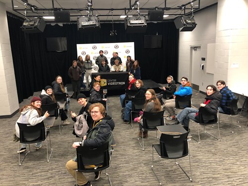 Ils et elles ont pu effectuer une visite VIP du Centre Vidéotron à Québec, en compagnie de Dominique Goulet, directrice de la programmation des événements. Cette dernière est responsable de l’accueil des grandes vedettes qui viennent en spectacle. Elle a échangé avec le groupe au sujet de son métier et des défis qui accompagnent le travail dans le domaine de l’événementiel.
