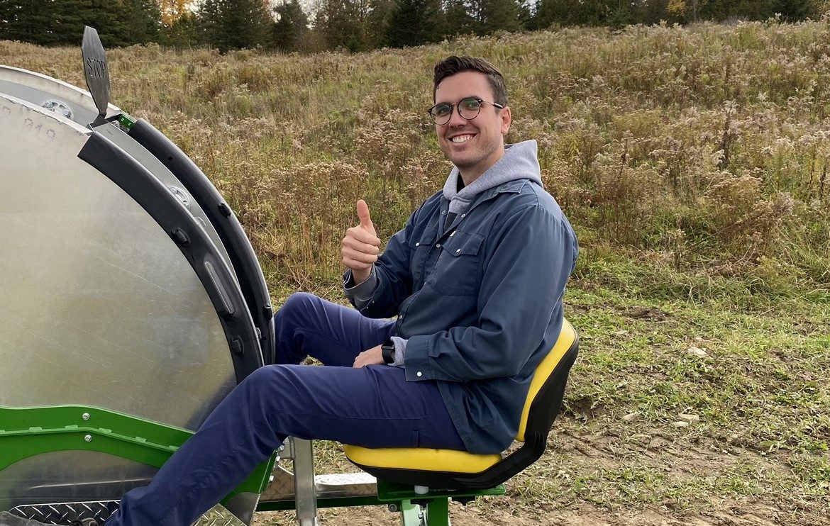 Alors qu’il étudiait en Techniques de génie mécanique au Cégep Limoilou, rien ne prédestinait William Leclerc à se lancer en affaires, dans le domaine agricole de surcroit! Ayant obtenu son diplôme d’études collégiales (DEC) en 2017, il a poursuivi ses études en génie mécanique avec concentration en entrepreneuriat technologique à l’Université de Sherbrooke (UdeS), où l’idée de développer un appareil permettant de faciliter la plantation de fraises a vu le jour. D’un simple projet étudiant, InnovaPlant est maintenant une jeune entreprise en démarrage, qui est devenu son gagne-pain à temps plein et celui de trois autres collègues de classe.
