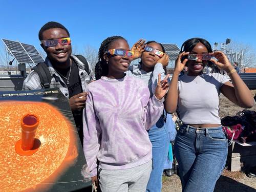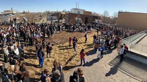 C’est à un spectacle fascinant qu’ont eu droit les nombreux étudiants et étudiantes ainsi que les membres du personnel réunis pour observer l’éclipse solaire le 8 avril sur le toit vert du campus de Québec, sur le terrain du campus de Charlesbourg ainsi qu’au campus des Métiers d’art.