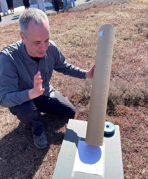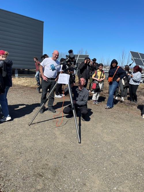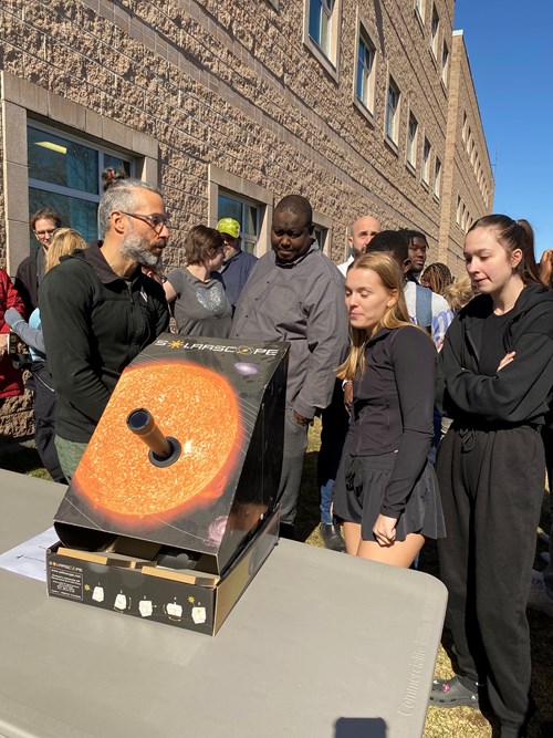 Au campus de Québec et à celui de Charlesbourg, les enseignants en physique, Pierre Dargis et Olivier Turgeon, ont mis à la disposition de tous et toutes des instruments permettant d’apprécier le phénomène : lunettes de protection spéciale, télescope solaire et solarscope (boîte de carton avec système optique où on projette une image du soleil).