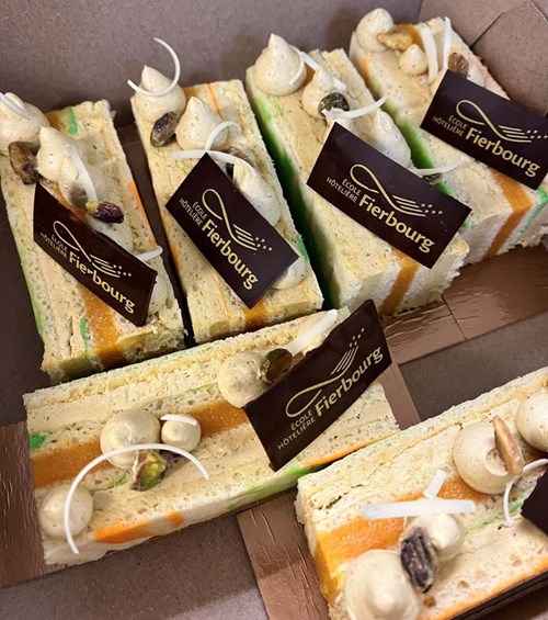 Du côté du diplôme d’études professionnelles (DEP) en Pâtisserie de l’École hôtelière Fierbourg, les élèves développent une spécialité dans la confection de produits variés tels des desserts avec crèmes et garnitures, des entremets, des petits fours, des gâteaux et des pâtisseries fines ou commerciales en tenant compte des spécificités des procédés de préparation et de cuisson appropriés.