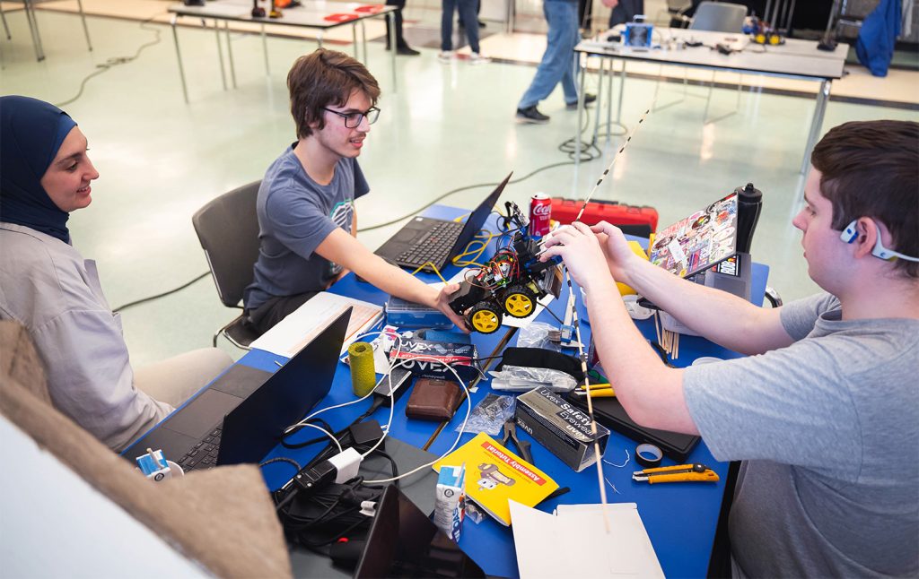 Tu as de l’intérêt et de la motivation pour te joindre à une équipe où les forces et les aptitudes de chacun font vraiment la différence ? Tu aimes les défis et te pousser au maximum de tes connaissances ? Le club de robotique est pour toi !